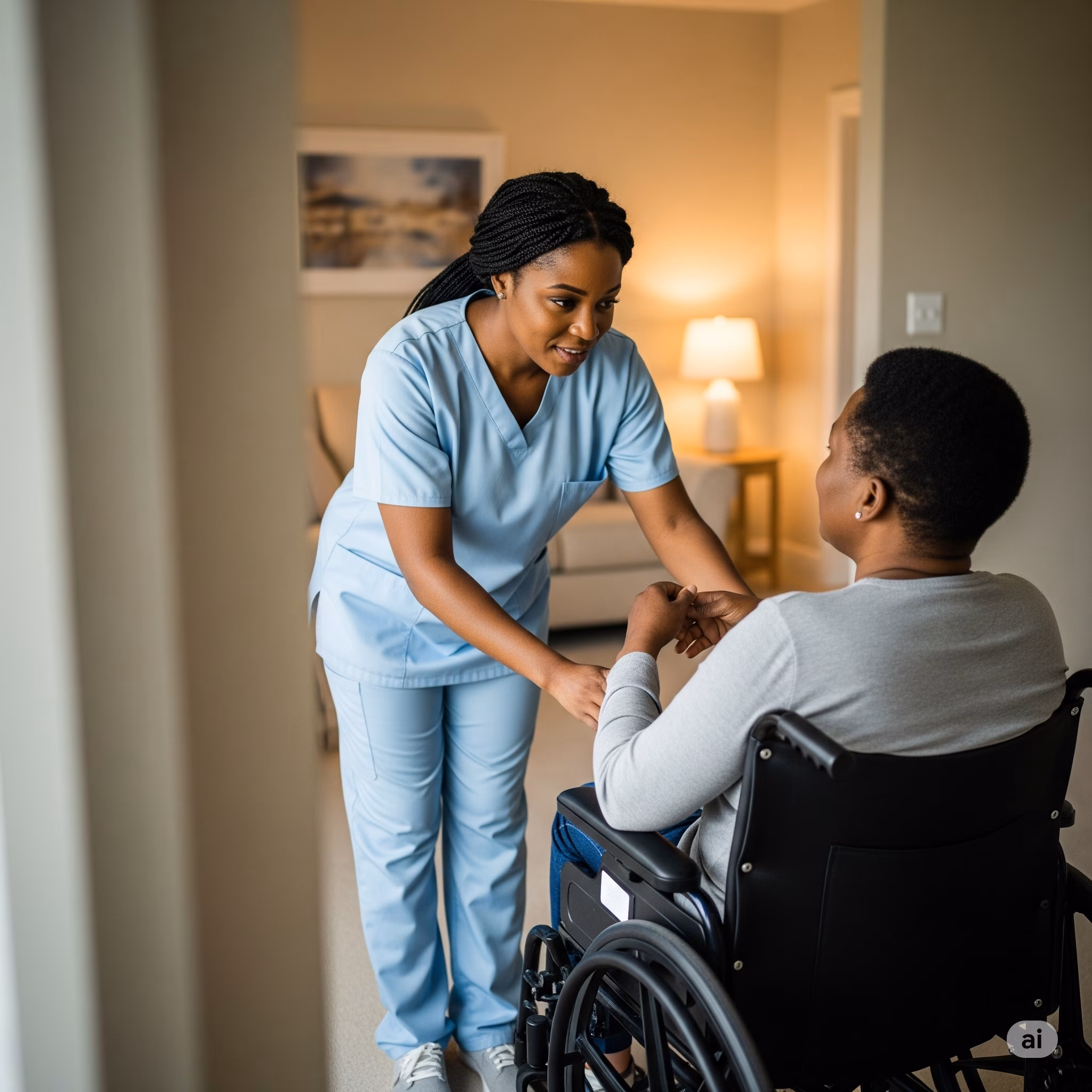 Helping residents maintain their independence with light assistance in daily routines, personal care, and medication reminders in a community living setting.
